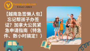 别让一个小疏忽毁了你的越南假期!许多加拿大家庭在规划亲子游时,常误以为孩子可以与父母共用签证。越南政府规定:无论年龄大小,只要孩子持有独立护照,就必须单独申请签证。 如果您距离出发只剩不到 72 小时,这篇”越南紧急签证(Urgent Visa)”懒人包,将是您最快的救命稻草!