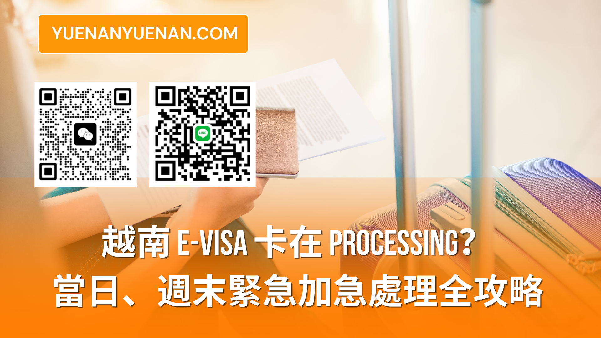2. 时联络 如遇极其紧急情况(如已在机场),请立即通过 LINE/微信:vietnam-visaEmail : info@yuenanyuenan.com 告知您的申请编号。