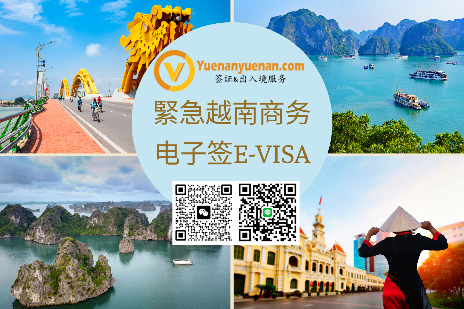 - 在线申请紧急签证: 访问 https://www.yuenanyuenan.com/apply/,选择“电子签加急服务”。在非常紧急情况下,请通过 LINE/微信:vietnam-visa 或 Email : info@yuenanyuenan.com 联系我们。